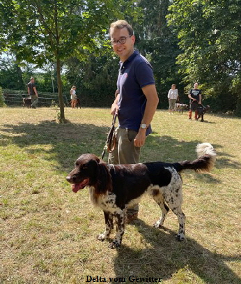 Dark vom Gewitter 347/21 Ein im Idealmaß stehender, absolut harmonischer Rüde mit passenden Proportionen. Sehr schöne obere und untere Linie. Korrekt angesetzte und getragende Rute. Korrekter und raumgreifender Bewegungsablauf in allen Gangarten. Schön pigmentiertes, harsches Gebrauchshaar in korrekter Länge in allen Bereichen. Wesen: lebhaft/temperamentvoll, selbstsicher, sozialverträglich. v - v - v
