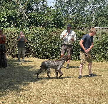 Calla vom Hartwald 36/21 Typvolle Hündin mit ausreichender Knochen- und Muskelsubstanz. Eleganter, flüssiger Bewegungsablauf; gerader Rücken; hinten etwas eng gehend. Sehr gut durchgehaartes Sommerhaar. Wesen: ruhig/ausgeglichen, selbstsicher, sozialverträglich. sg - sg - sg