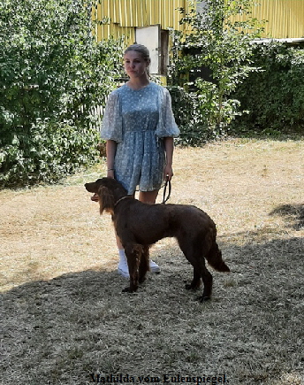 Calla vom Hartwald 36/21 Typvolle Hündin mit ausreichender Knochen- und Muskelsubstanz. Eleganter, flüssiger Bewegungsablauf; gerader Rücken; hinten etwas eng gehend. Sehr gut durchgehaartes Sommerhaar. Wesen: ruhig/ausgeglichen, selbstsicher, sozialverträglich. sg - sg - sg