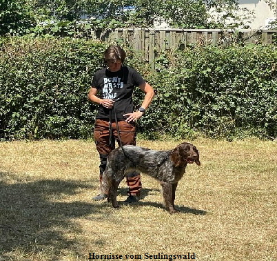 Hornisse vom Seulingswald 378/21 Typvolle Hündin mit sehr guter Knochensubstanz. Passender Hündinnenkopf. Flüssiger und raumgreifender Bewegungsablauf. In der Bewegung hinten etwas bodeneng, ansonsten Läufe korrekt gewinkelt und gestellt. Dichtes, eng anliegendes Gebrauchshaar. Wesen: ruhig/ausgeglichen, selbstsicher, sozialverträglich. sg - sg - sg
